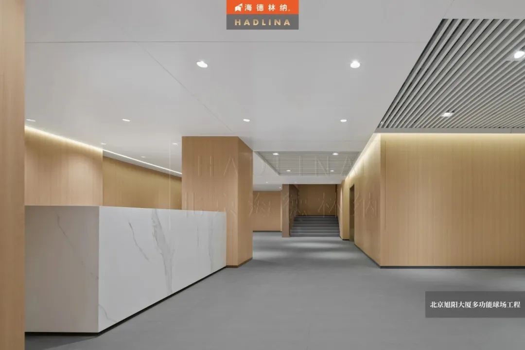 在北京旭陽大廈多功能球場的設計中,我們選擇了海德林納?木紋色金屬裝配式墻板,為這個現代城市空間帶來了獨特的視覺感受和卓越的功能性。