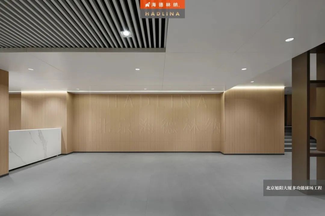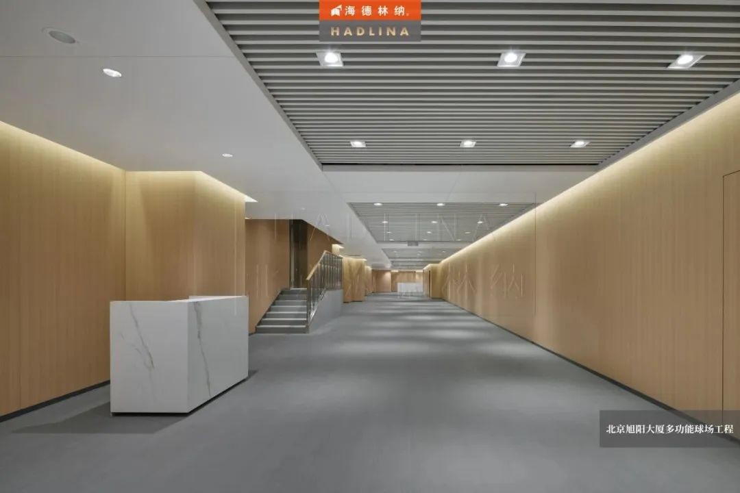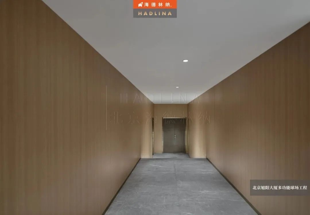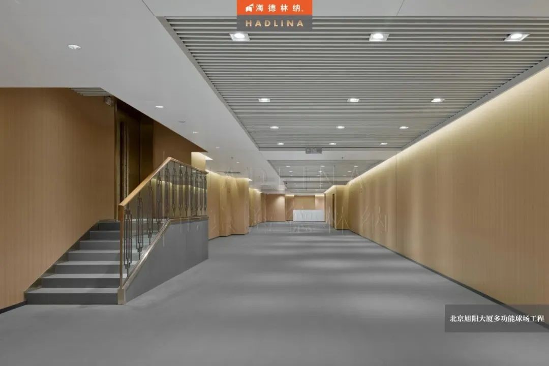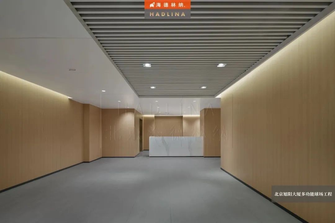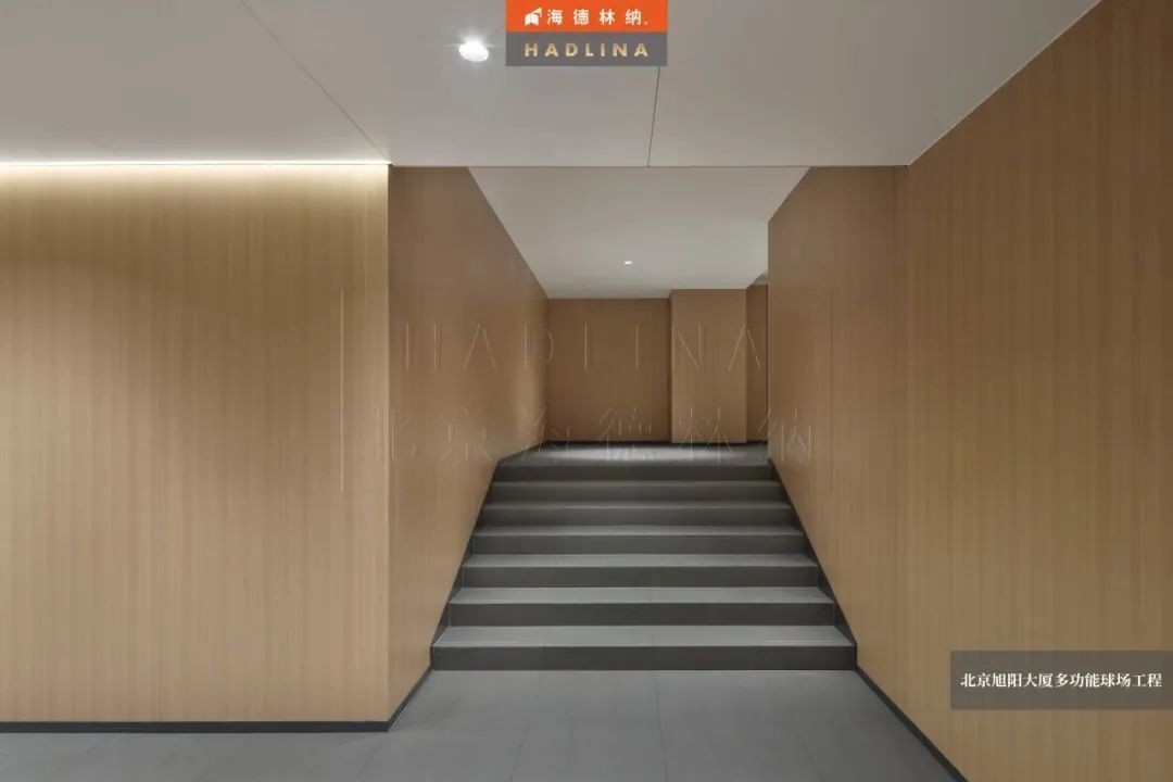 海德林納?金屬裝配式墻板以其卓越的可塑性和穩定性,賦予了北京旭陽大廈多功能球場獨特的藝術感。整個設計中,我們將海德林納?木紋色金屬裝配式墻板的自然質感、堅固耐用、防火A級、防撞擊性能與特殊定制的沖孔吸音板完美融合。為北京旭陽大廈多功能球場注入了現代、自然、安全的元素,創造了一個集美觀、實用和環保于一體的運動空間。