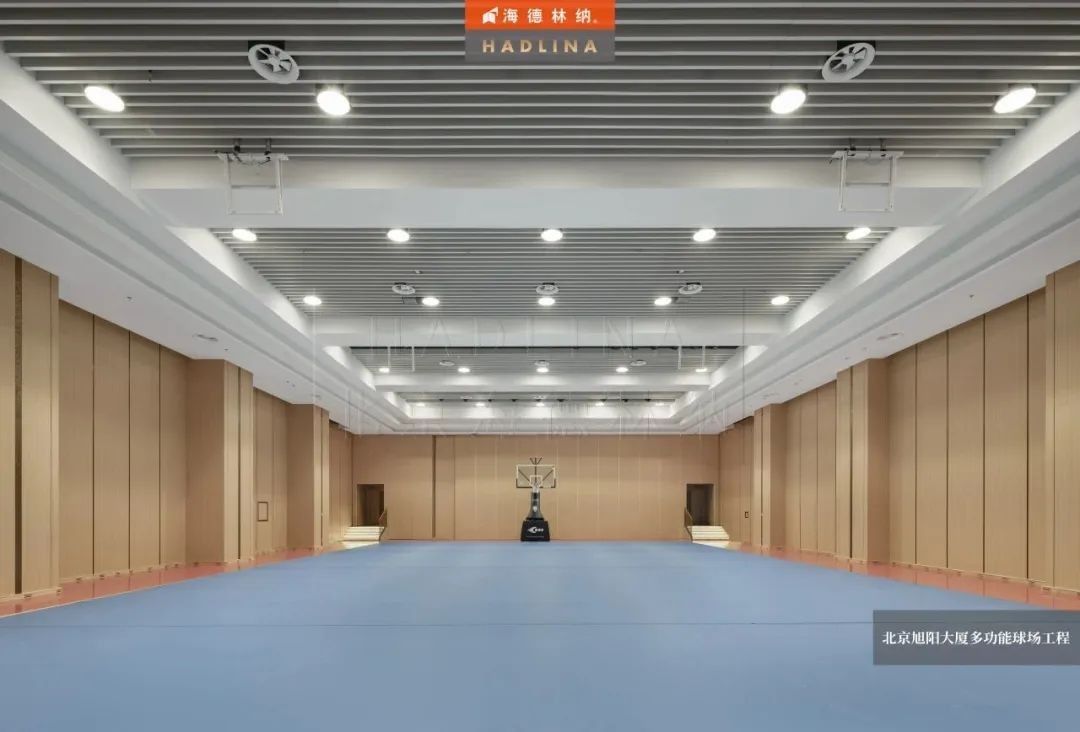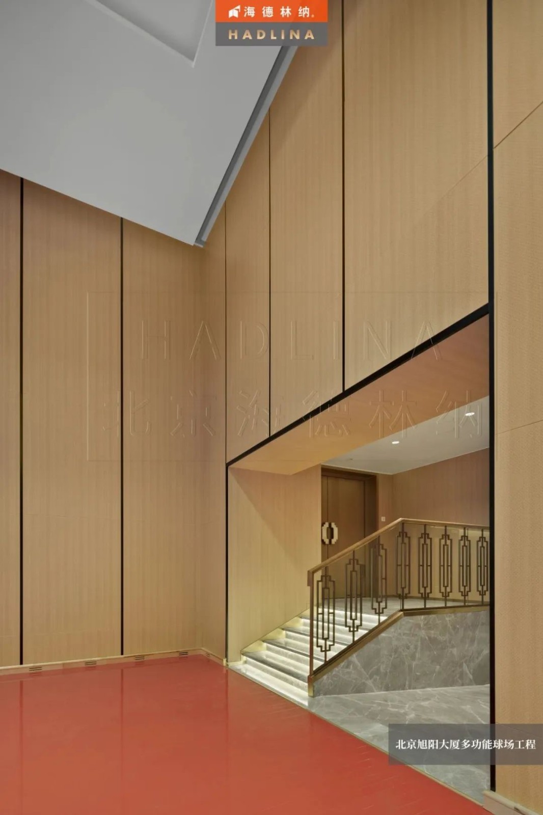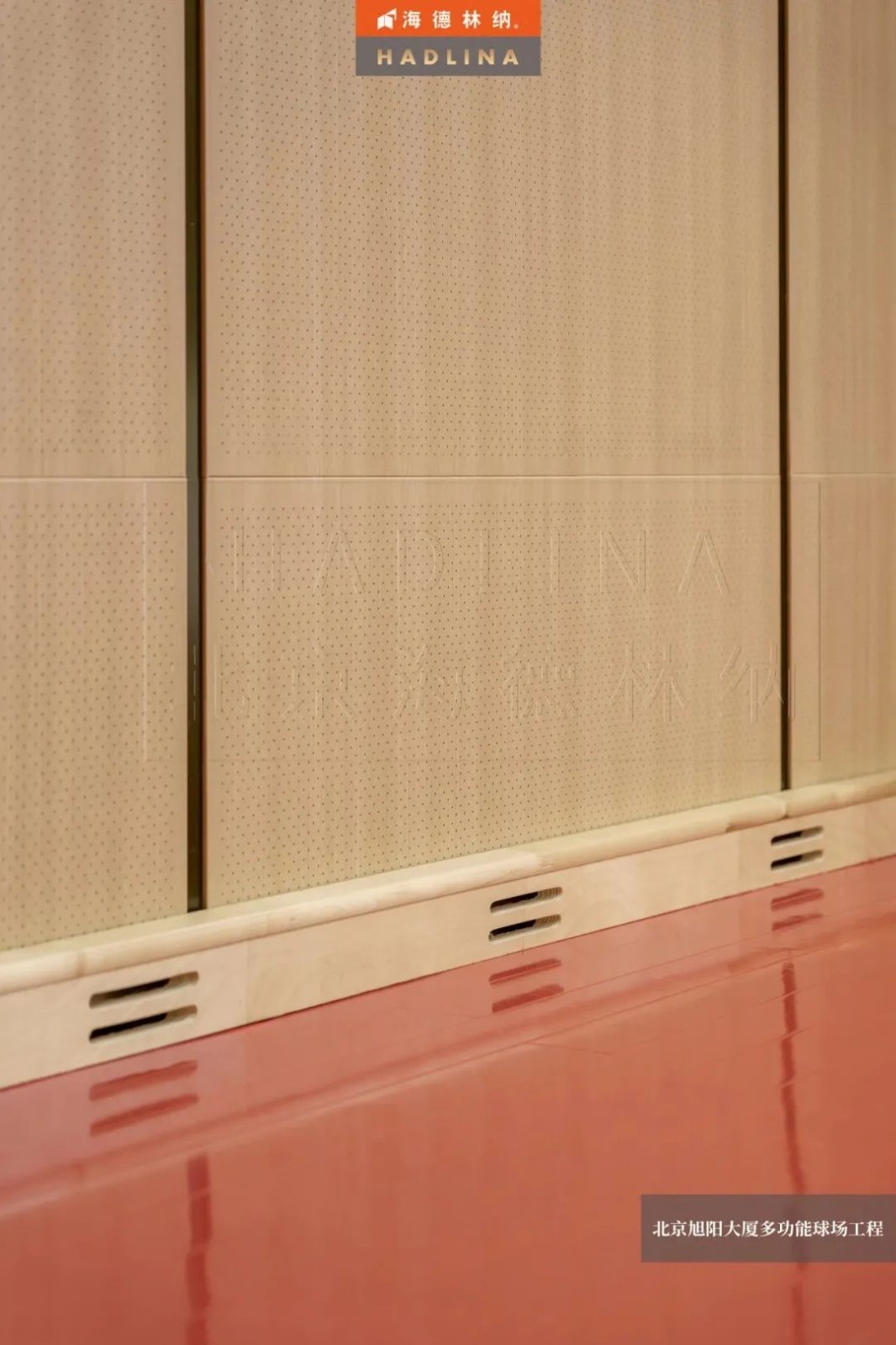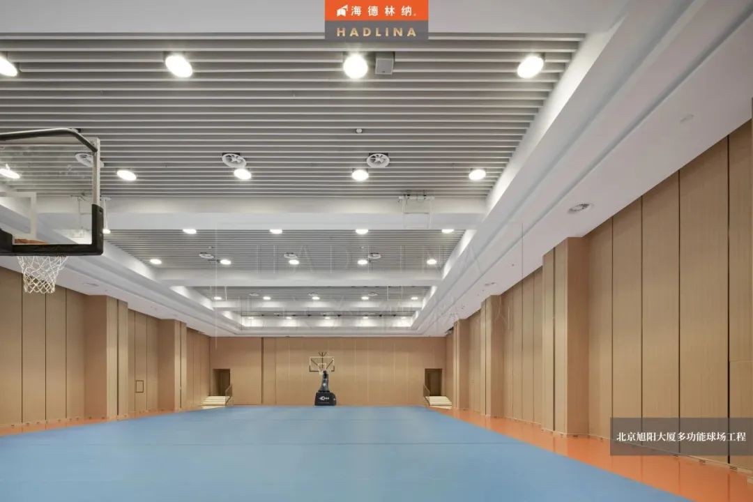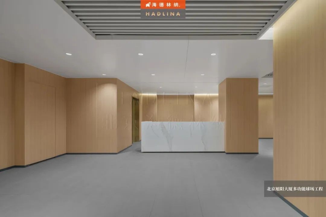 海德林納?金屬裝配式墻板以其卓越的可塑性和穩定性,賦予了北京旭陽大廈多功能球場獨特的藝術感。整個設計中,我們將海德林納?木紋色金屬裝配式墻板的自然質感、堅固耐用、防火A級、防撞擊性能與特殊定制的沖孔吸音板完美融合。為北京旭陽大廈多功能球場注入了現代、自然、安全的元素,創造了一個集美觀、實用和環保于一體的運動空間。